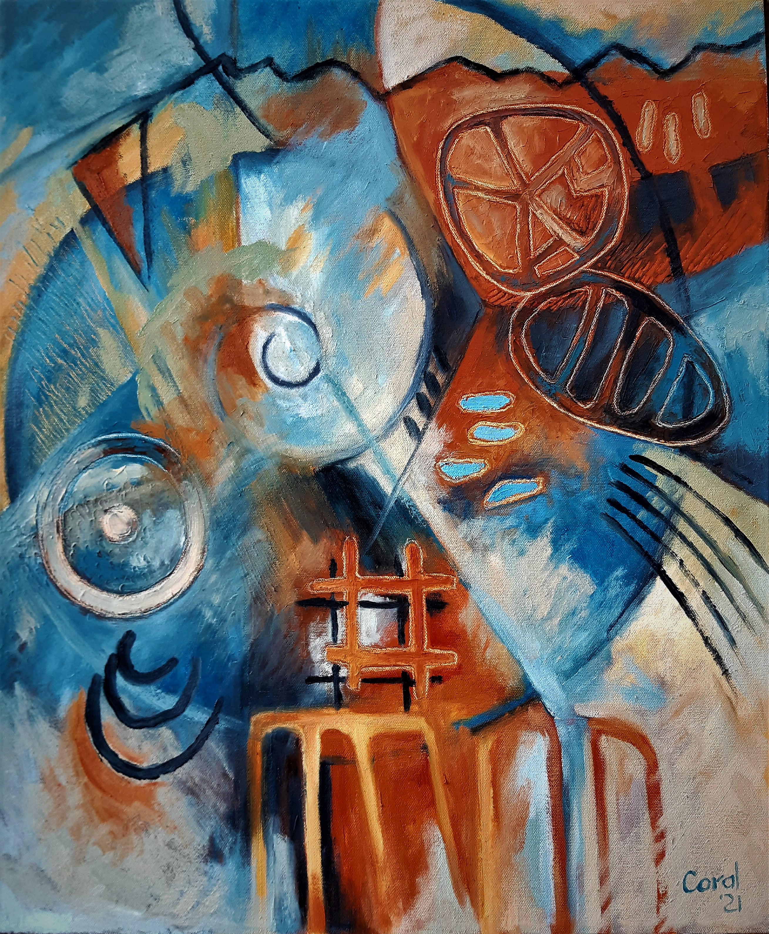 Coral Fourie was born in Mahikeng in 1937. During her developmental years in the Kalahari and Botswana Coral formed unique influential friendships with the Bakwena tribe of Batswana, Bakgalagadi, G/hana, G/wii and Khua San peoples. During this time Coral met South African writers, such as P.J. Schoeman and W.A.de Klerk, who were friends of the family. Impactful impressions which can be seen echoing in her work today however, were created by participating in traditional wall paintings with mud and cow dung with the local women and watching Bushmen doing etchings on ostrich eggshells.