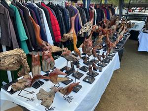 Among the many captivating displays highlighting the rich tapestry of South African artistry and dedication, two stalls stood out, one with wooden artwork and the other with stone carving.