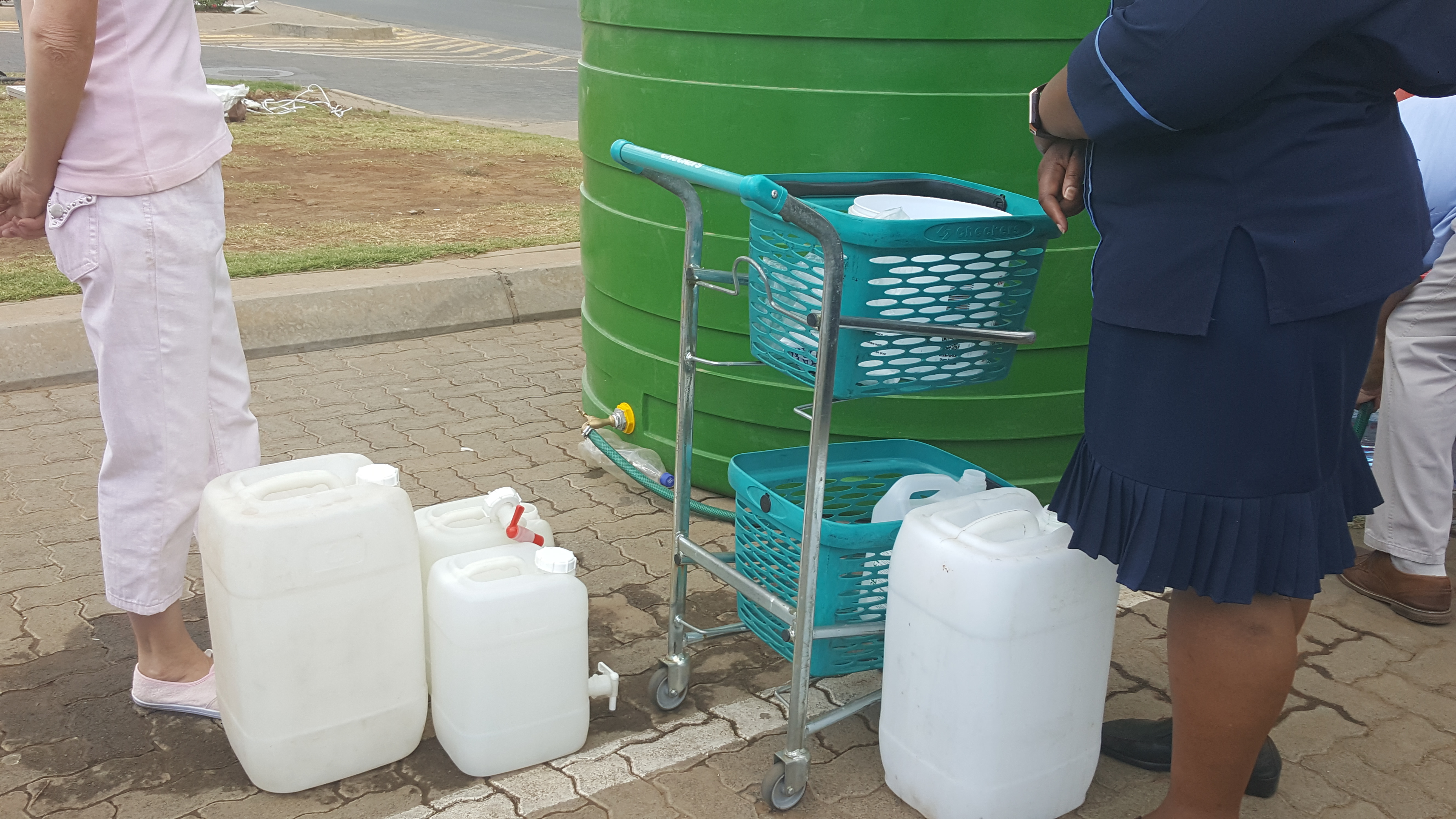 Water tanks were made available at the Spitskop Fruit Lovers Market, Fichardt Park Library, Lourier Park Primary School, the Fauna Engen Garage, Fleurdal Mall, Pellissier Engen Garage, and the Uitsig Victory Bottle Store (General Brand Street).