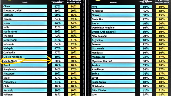 Die nuwe (wederkerige) tariewe, insluitend ’n 30%-heffing op Suid-Afrikaanse produkte en 25% op die invoer van motors, sal na verwagting handelsbetrekkinge wêreldwyd ontwrig. Ekonome het reeds voorspel dat dit ’n beduidende impak op Suid-Afrika se ekonomie, veral die uitvoersektor, sal hê.