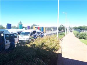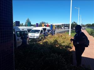 The OFM News team was at the scene just as the police loaded a group of protesters into vans after demonstrations against the 2021 registration process moved to the main campus gate, located in Nelson Mandela Drive.