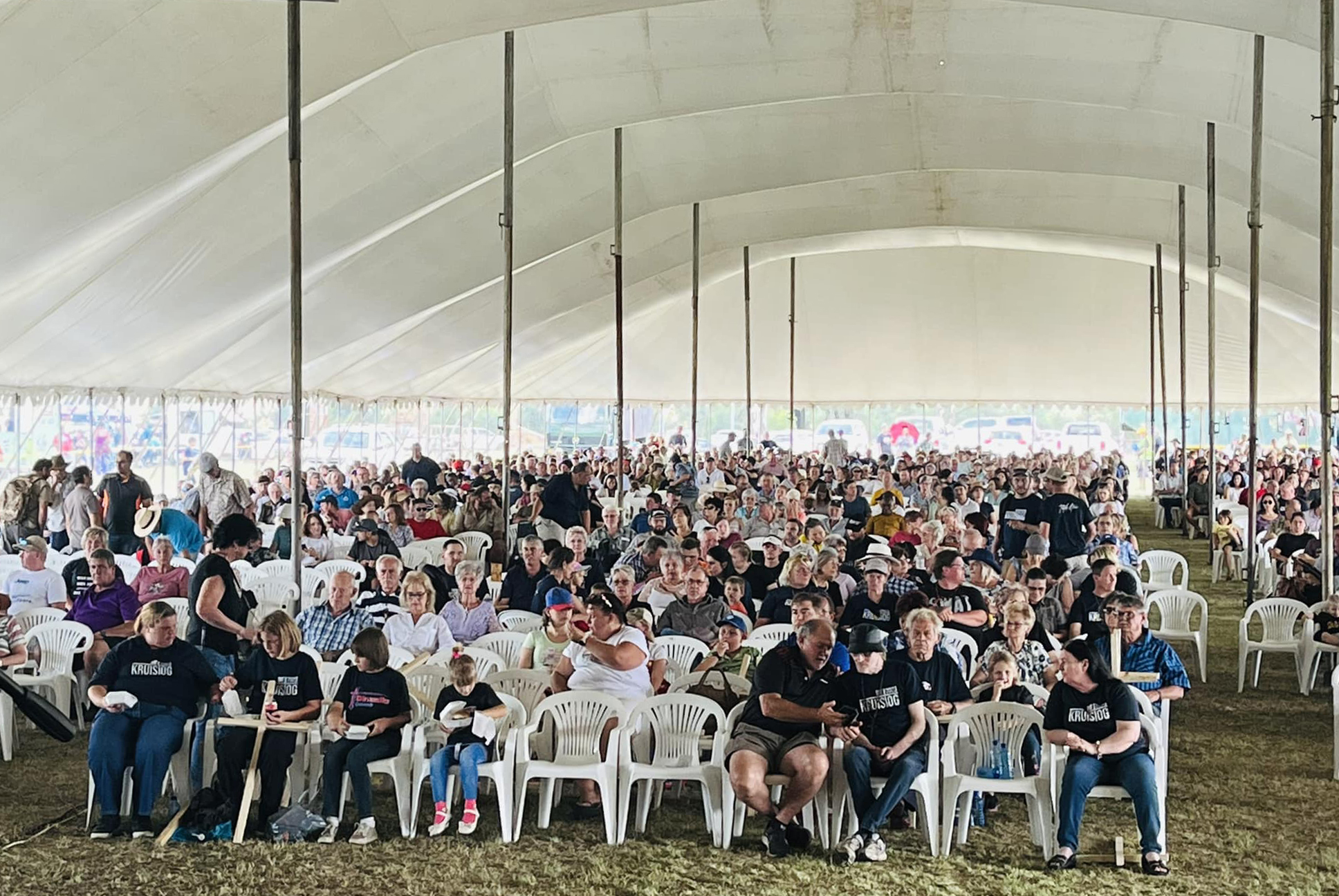 Meer as tweeduisend mense het in die tent saamgekom vir lofprysing en aanbidding. Baie het agterna gesê hulle is bly daar was nie lang toesprake of preke nie. Foto: Facebook