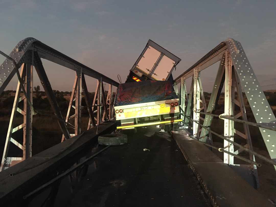 A truck is stuck on a bridge under construction at Koffiefontein in the Free State after an accident in the early hours of Thursday morning.