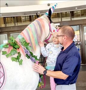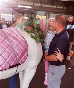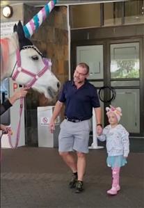 Liza is een Sondag verras deur 'n 'unicorn' of eenhoring wat vir haar by die hospitaal kom kuier het.