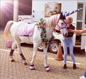 “Wonderlike vriende van ons, Michael en Vinia Wheatley, het die idee 'n werklikheid gemaak. Die 'eenhoring' behoort aan Elbie van Eeden van Benoni en word gestal by Carla Grove. Hierdie dames het saamgewerk om vir Donna op te maak as ‘n unicorn en haar al die pad Centurion toe gebring.”