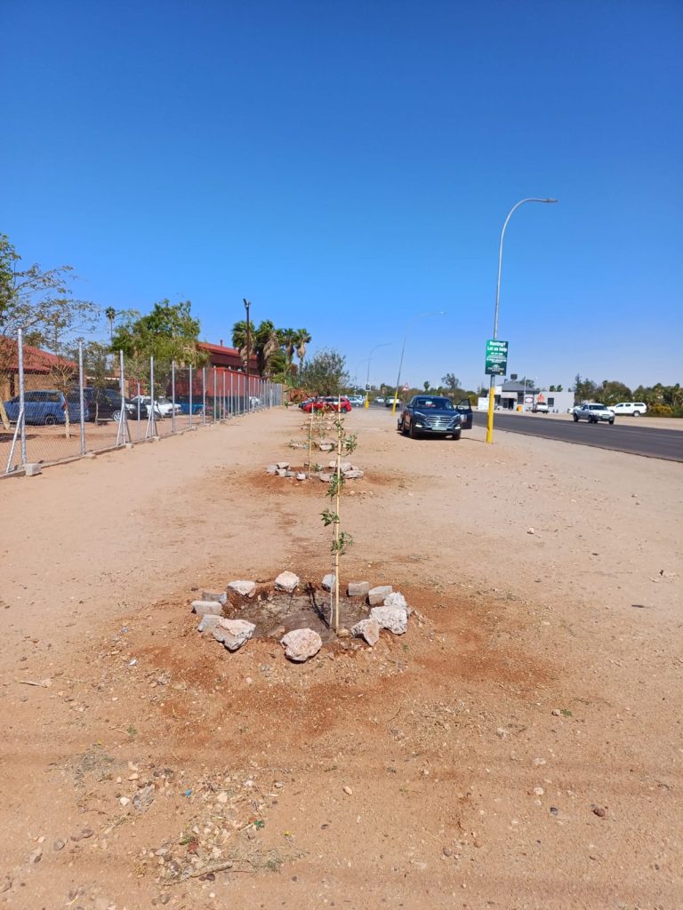 Tien inheemse boompies pryk by die Schroderstraat-polisiekantoor op Upington danksy mooi samewerking oor politieke grense heen.