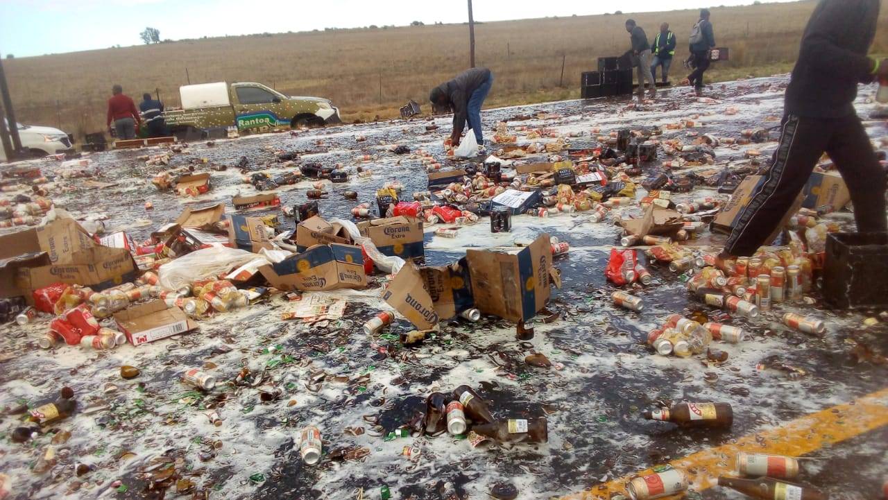 Alcohol fell from a truck on the N8 between Botshabelo and Bloemfontein. Photo supplied