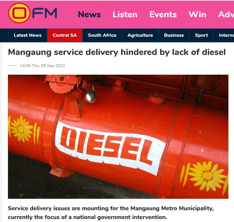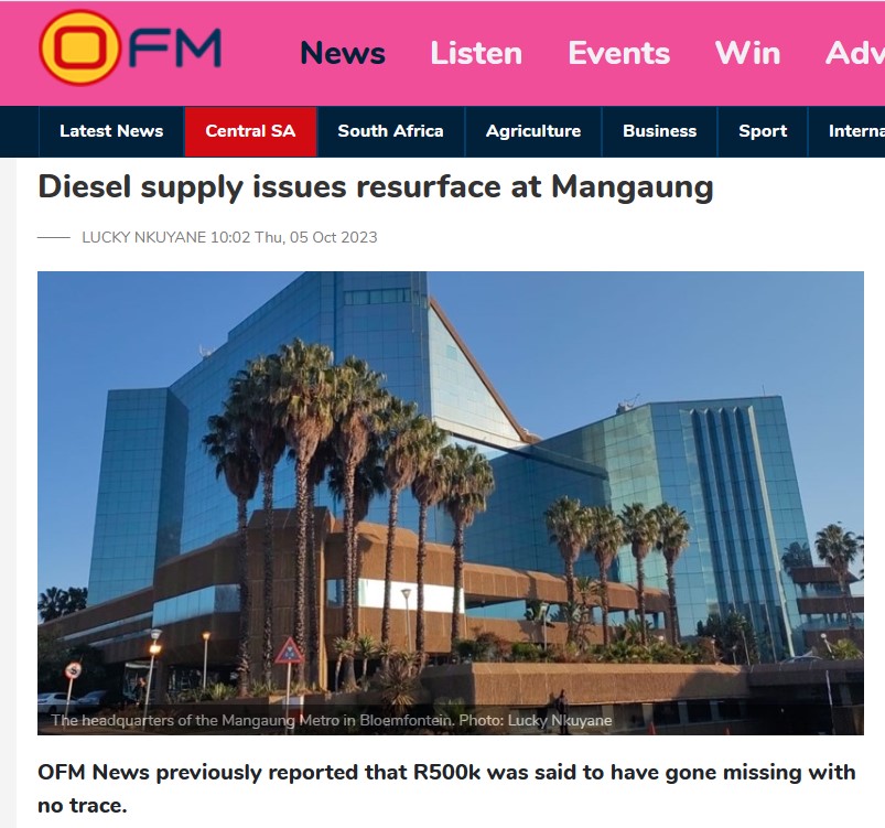 Mangaung Metro erken drama met diesel─── LUCKY NKUYANE 13:37 Fri, 20 Oct 2023
