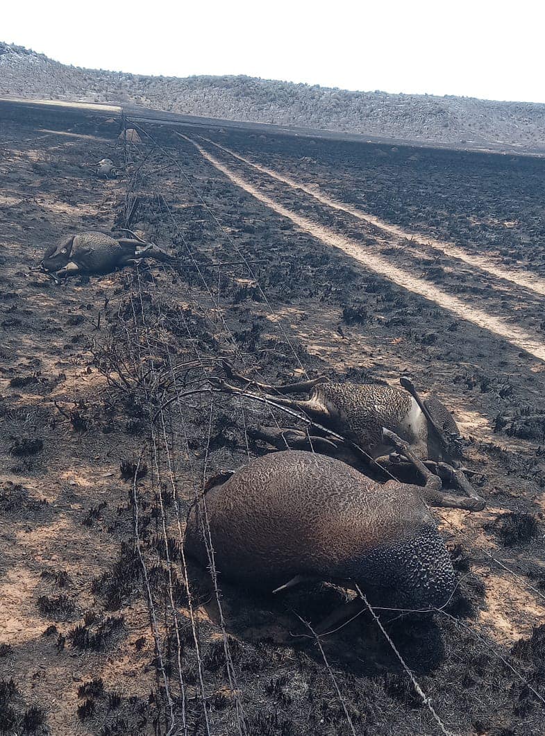 “Ons kan nog nie syfers deurgee nie maar daar word vermoed dat derduisende hektaar gebrand het. Daar is ook boere wat honderde vee verloor het.”