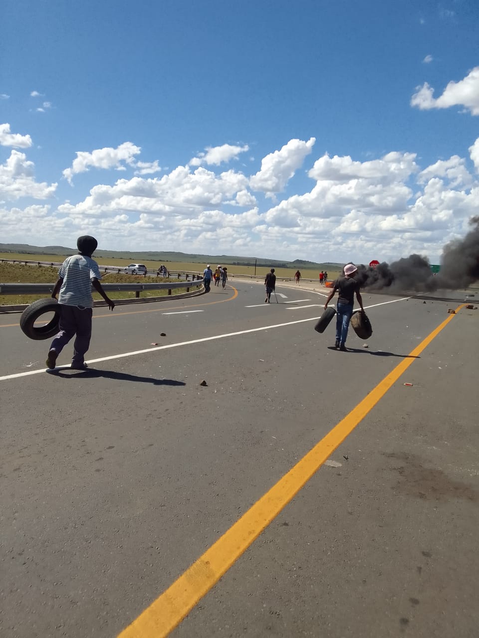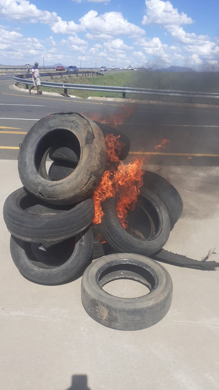 Protesters were burning tyres, stopping traffic on the N8. Picture supplied