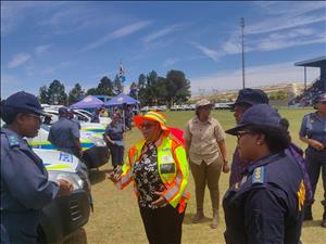 Community Safety, Roads, and Transport MEC Maqueen Letsoha-Mathae handed over 44 vehicles destined for various districts at the Bronville stadium in Welkom on Wednesday (29/11). Xhariep District received seven cars, Lejweleputswa ten, Fezile Dabi six, and Thabo Mofutsnyana 14, while Mangaung Metro received ten.