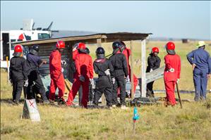 Die Rooimiere en SAPD is al van 04:00 af teenwoordig in Lourierpark, Bloemfontein. Foto verskaf