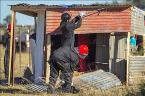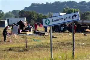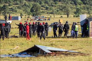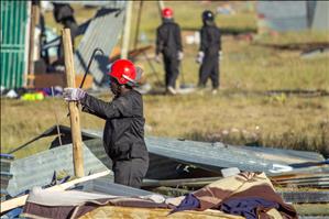Die Rooimiere is vanaf 04:00 Vrydag (8/3) teenwoordig in Lourierpark, Bloemfontein, waar hulle in opdrag van die Hooggeregshof onwettige strukture van grondbesetters verwyder.