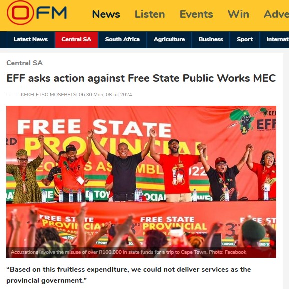 The case against Mathe comes at a time when the Free State government is already under scrutiny. The EFF has called on Mathae to take decisive action against Public Works MEC Dibolelo Mance following allegations of irregular expenditure. Mance is accused of squandering over R100,000 of public funds on a trip to Cape Town, which allegedly included herself, her chief, and her bodyguard.