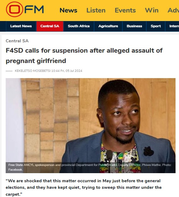 Phiwe Mathe, who also serves as a deputy director in the provincial government’s Public Works department, wrote a voluntary step-aside letter to the League's Provincial Secretary, Mayibuye Bangani. The decision follows demands from the Forum 4 Service Delivery (F4SD) in the Free State for Mathe’s immediate suspension without pay until the case is concluded.