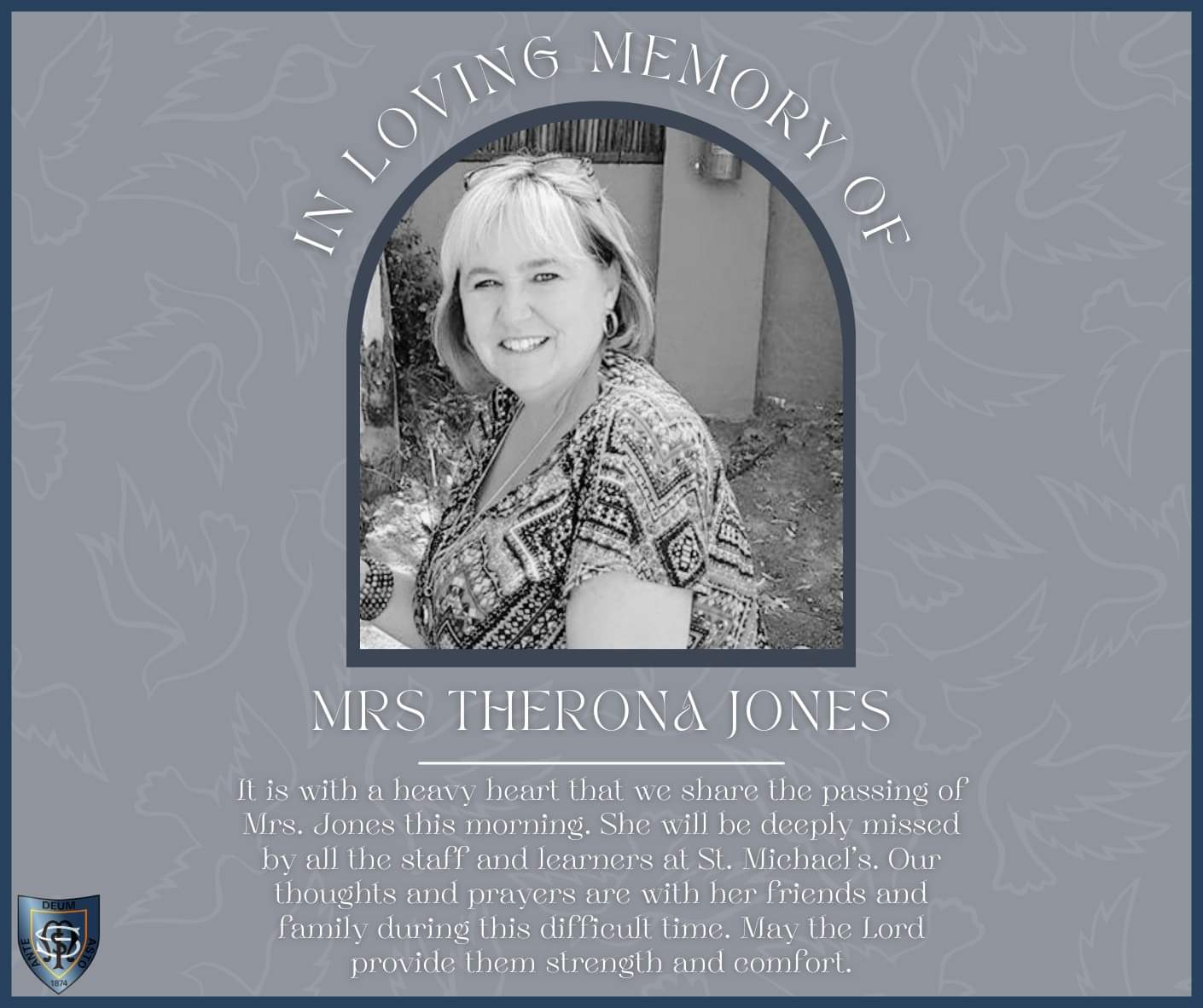 Volgens Stumpfe is Jones se dood ’n geweldige verlies vir die skool, aangesien hulle soos ’n familie is. “Therona was ’n besonderse mens wat ’n groot passie vir haar werk en die kinders gehad het. Die ‘Lieveheersbeestjie’-tema van haar klas het Wiskunde ’n aangename ervaring vir haar klasse gemaak.