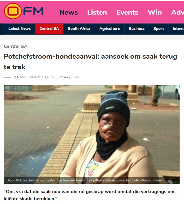 Potchefstromers eers weer in Januarie hof toe oor veghondaanval─── ZENANDE MPAME 15:29 Tue, 22 Oct 2024