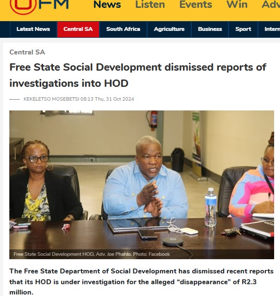 The Free State Department of Social Development has set the record straight on allegations of mismanagement involving R2.3 million, leveled against its Head of Department (HOD).