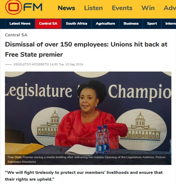 Khoabane said dismissals contradict the government’s goal of building a developmental state, calling the decision an “arrogant answer” that disregards the socio-economic challenges in the province.