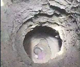 Mpho Pienaar was trapped in an unused borehole for hours. Photo: Screenshot
