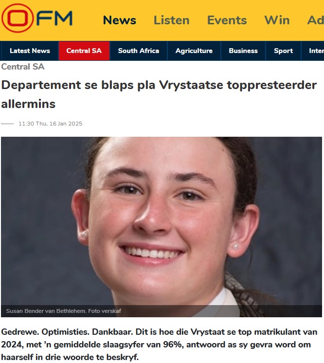 Vrystaat se topmatrikulante van 2024 onder luide applous vereer─── KAREN VAN DER BERG 13:10 Fri, 17 Jan 2025