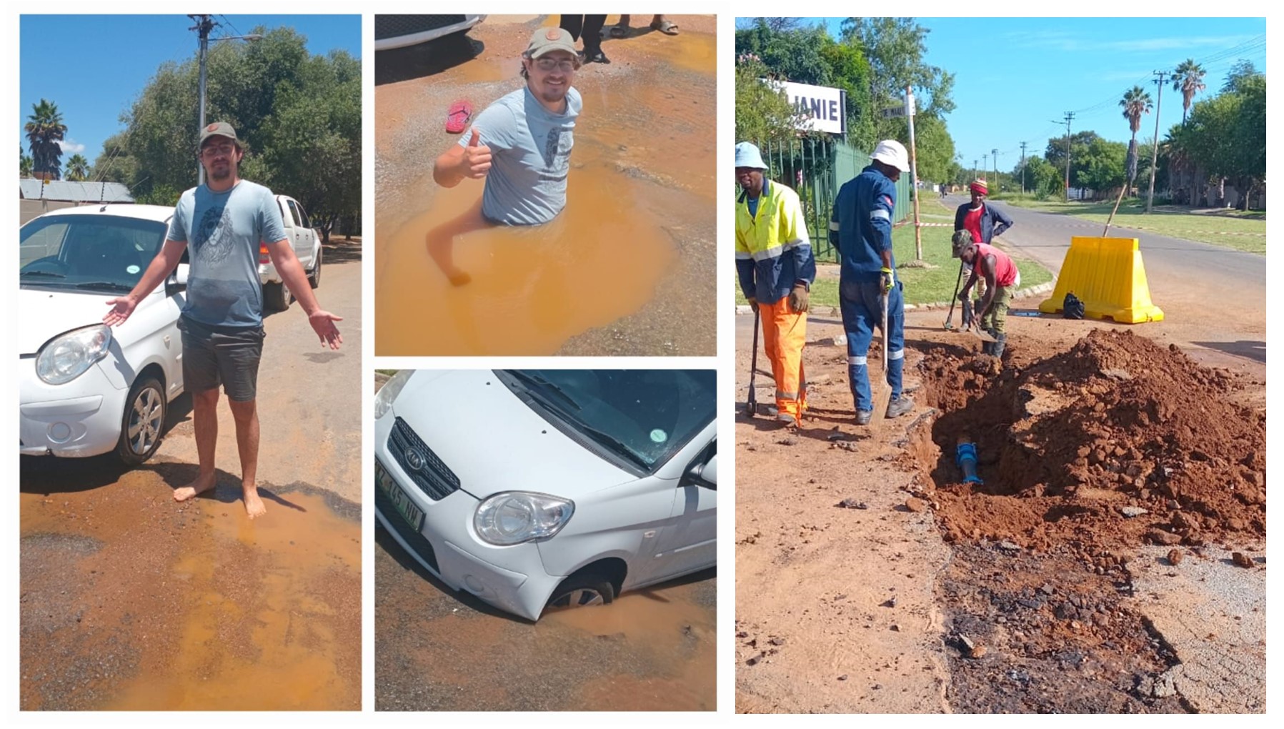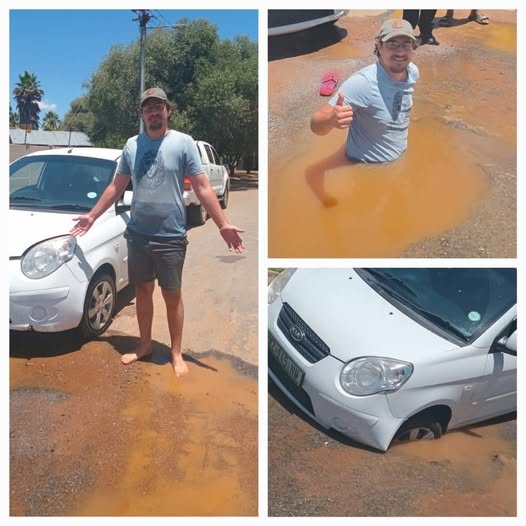 Hy het OFM Nuus se navraag gereageer nadat foto’s van ’n man, wat halflyf in ’n gat vol water in ’n straat in Klerksdorp staan, opslae gemaak het op sosiale media. Op ’n foto kan ook gesien word hoe ’n motor se voorwiel in die gat wegsink.