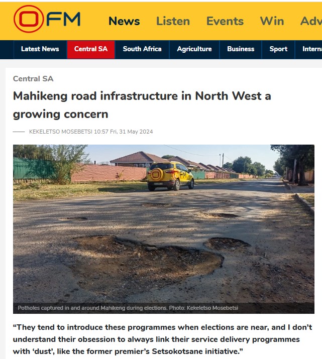 Tog verkeer strate in middedorpe, voorstede en townships in ’n haglike toestand waar bestuurders met die hande in die hare sit weens slaggate. Infrastruktuur word steeds ná jare verwaarloos, wat gemeenskappe laat wanhoop.