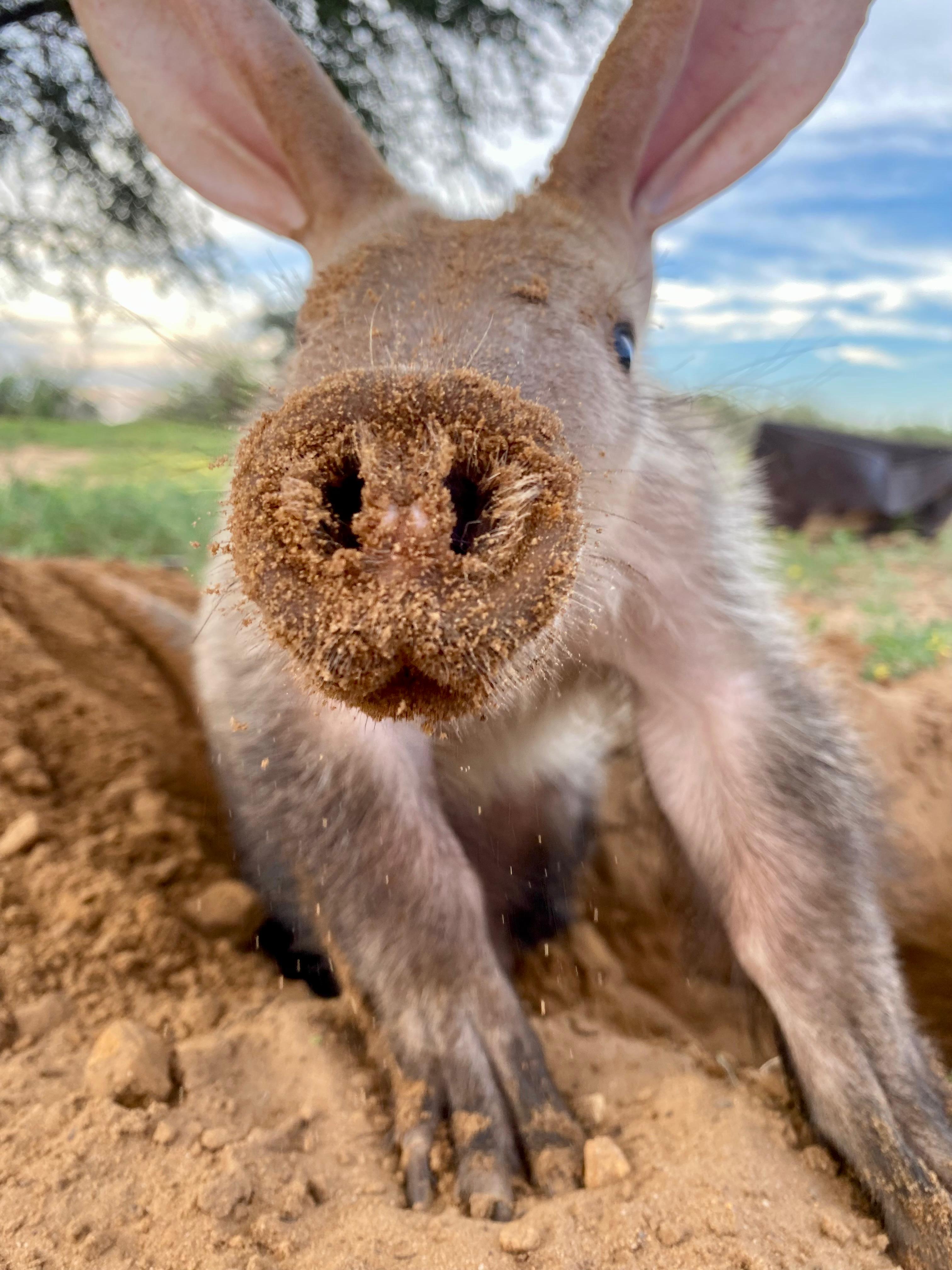 Henrie, ’n erdvarkkleintjie, by Kalahari Wildlife Project. Foto: Kalahari Wildlife Project