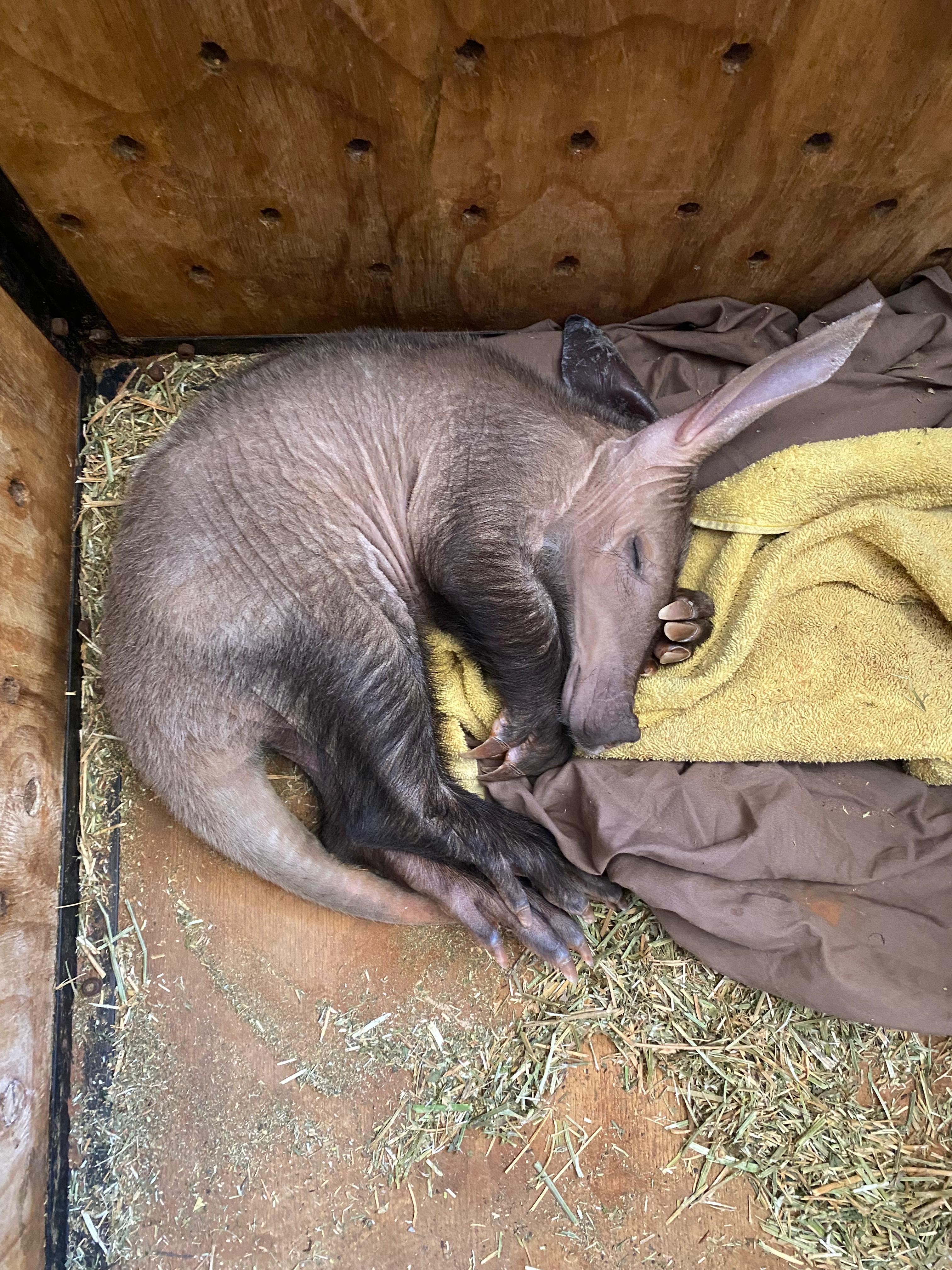 Henrie, ’n baba-erdvark, is wees gevind nadat sy ma waarskynlik deur stropers doodgemaak is.