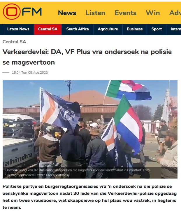 “Die VF Plus sal nie kommentaar lewer oor die meriete van die saak nie, maar vind die oormatige vertoon van geweld onaanvaarbaar. Dit dui op ’n polisiestaat,” het Groenewald gesê.