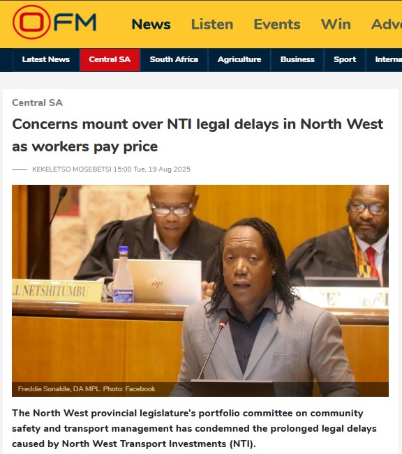 “What was meant to be a rescue has turned into a bloody legal battlefield, while NTI’s once world-class depots like Durabuild and Dana Viljoen lie vandalised and abandoned,” said North West community safety and transport management portfolio committee chairperson Freddy Sonakile. Sonakile, leader of the DA’s caucus in the legislature and the party’s provincial chairperson, reacted after a two-day oversight visit to the beleaguered NTI.