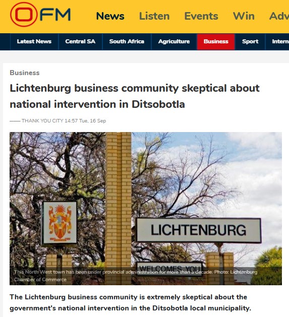Lichtenburg Chamber of Commerce chairman Chris Breedt voiced his frustration over years of deterioration in the town. “It’s disturbing to see the deterioration of Lichtenburg’s roads, buildings, and power and water infrastructure over the years. The situation is so bad that residents only get four hours of water a day.”