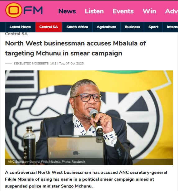 Mbalula threatens legal action against Mokgotsi after explosive claims─── KEKELETSO MOSEBETSI 15:46 Tue, 07 Oct 2025