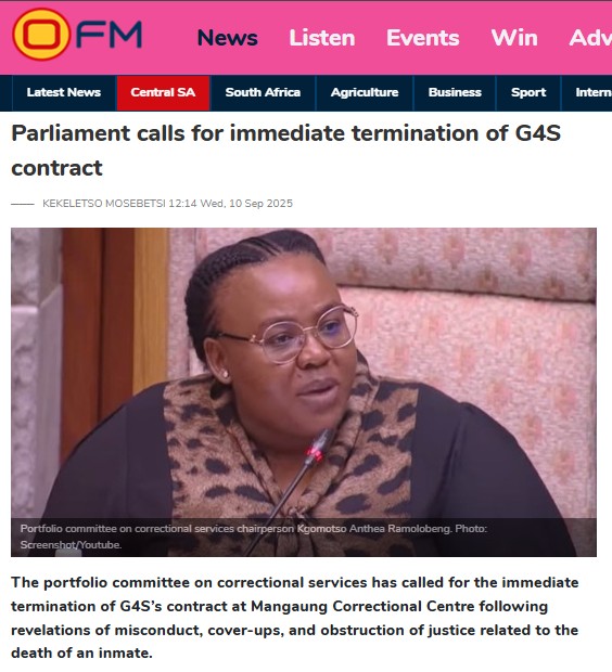 Mangaung G4S wardens back in court for alleged murder of inmate─── KEKELETSO MOSEBETSI 08:57 Thu, 09 Oct 2025