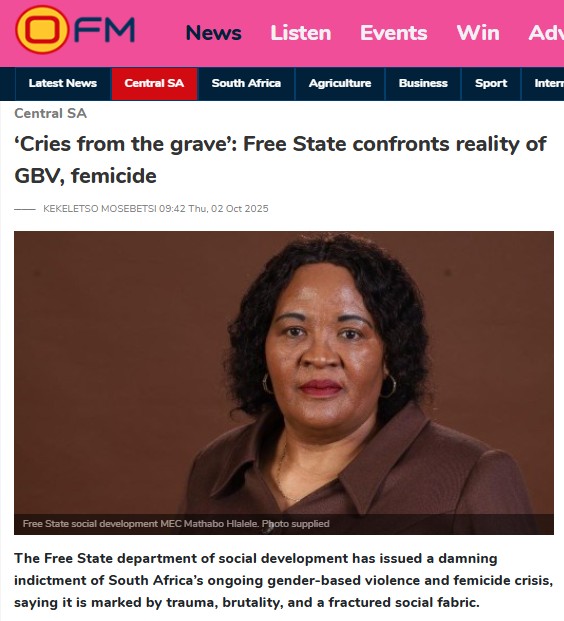 “We applaud the justice system for proper investigation,” said spokesperson Thembile Nqabeni. “The Free State government remains resolute in its commitment to eradicating gender-based violence and femicide (GBVF), and any collaboration with perpetrators.”
