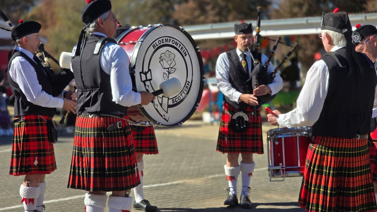 Die Bloemfontein Scottish Bagpipe Band. Foto verskaf