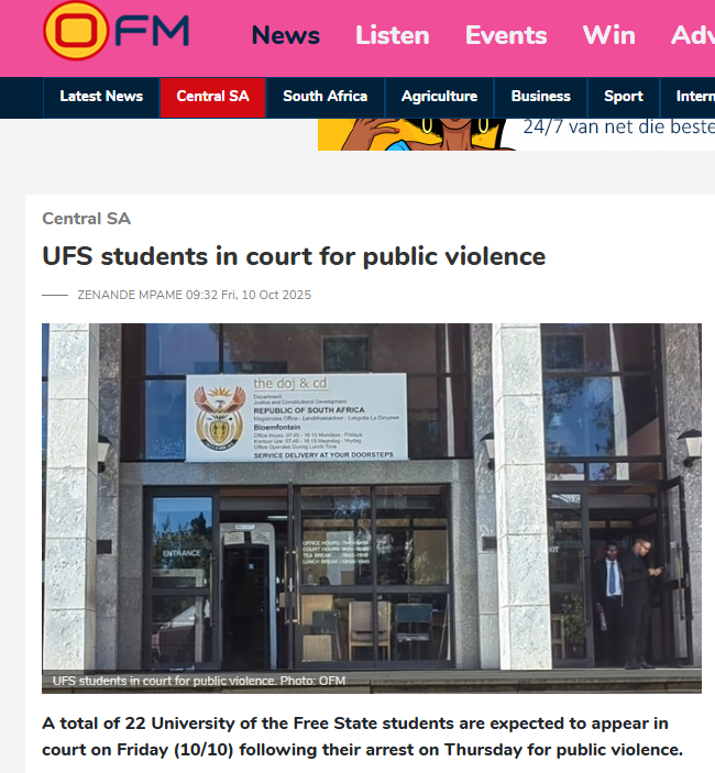 Case of UFS students postponed to November─── ZENANDE MPAME 08:46 Sat, 11 Oct 2025