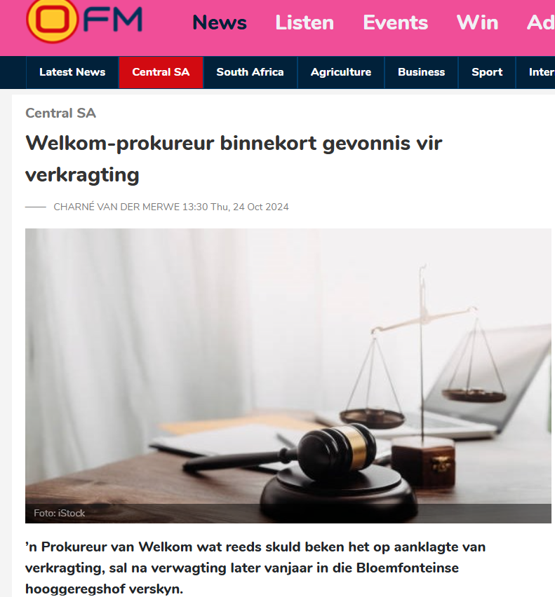 Welkomse prokureur eers later gevonnis vir seksuele misdrywe─── CHARNÉ VAN DER MERWE 10:25 Mon, 13 Oct 2025