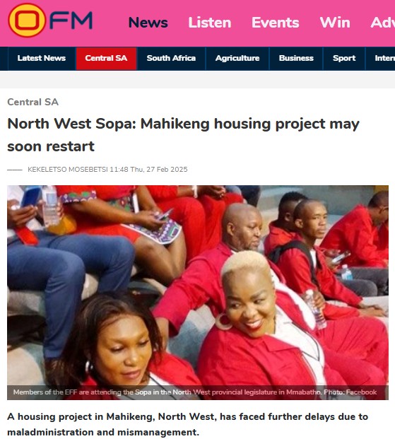 During his state of the province address on 27 February, Premier Lazarus Mokgosi said housing projects in Mahikeng had suffered further delays due to maladministration and mismanagement.