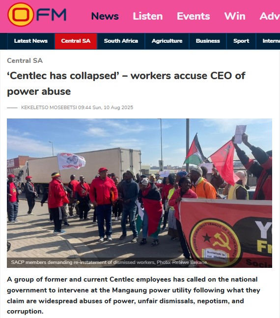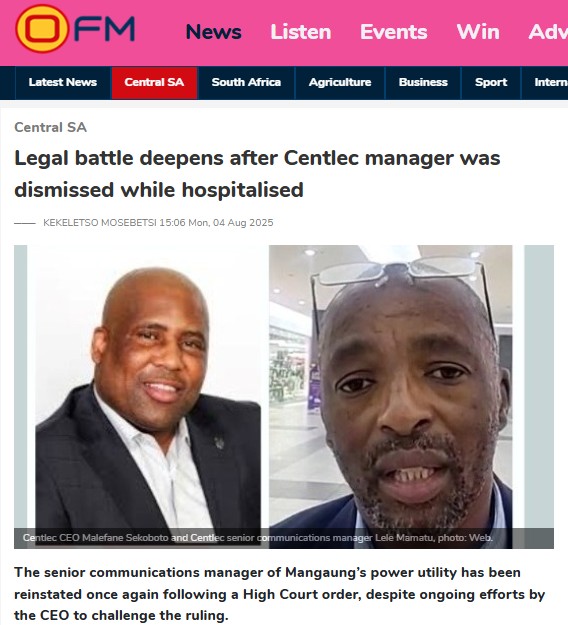 Mamatu’s legal troubles with Centlec began in June when he was reportedly removed from his position through what he alleges was a fraudulent resignation letter.