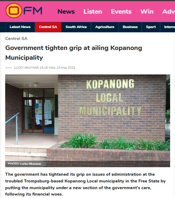 Deputy president Paul Mashatile, while addressing the National Assembly, expressed concern over the situation in Kopanong. He said the 2021 State of Local Government report had flagged the municipality as a dysfunctional service delivery hotspot.