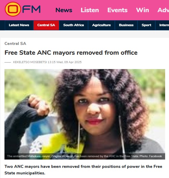 Earlier this year, the ANC Free State leadership removed their deployee, Zingisa Mgawuli, as mayor of Mohokahare, citing ongoing dysfunction in the municipality.