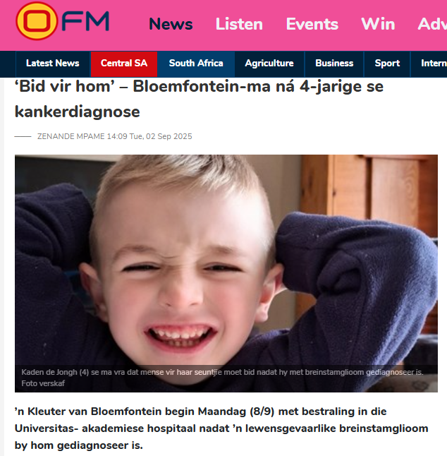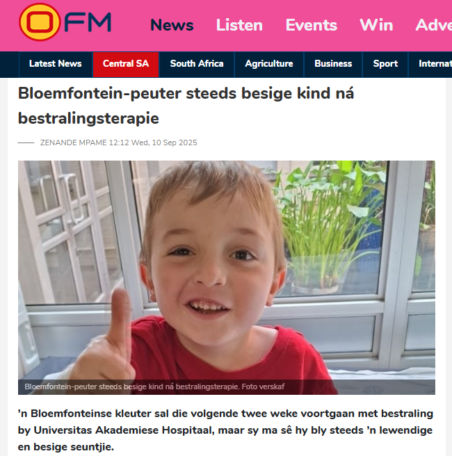 Bloemfonteinse kleuter vaar goed ná bestralingsterapie─── ZENANDE MPAME 10:38 Wed, 22 Oct 2025