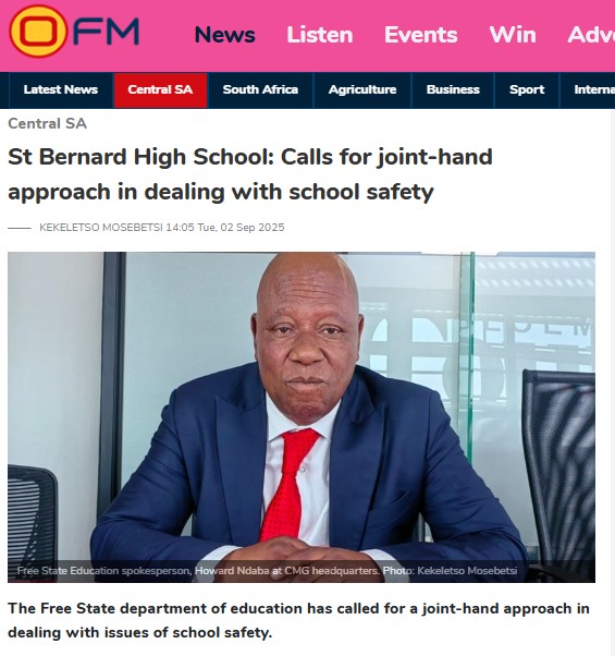 The Free State department of education has reaffirmed its commitment to prioritising school safety after a sexual harassment incident involving teachers at St Bernard High School in Bloemfontein.