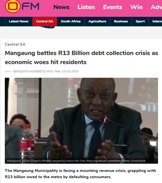 Free State government mulls trading provincial land to settle municipal debts─── KEKELETSO MOSEBETSI 15:13 Thu, 23 Oct 2025