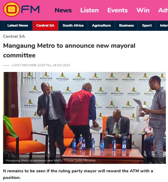 Mangaung mayor reshuffles mayoral committee─── KEKELETSO MOSEBETSI 10:56 Fri, 24 Oct 2025
