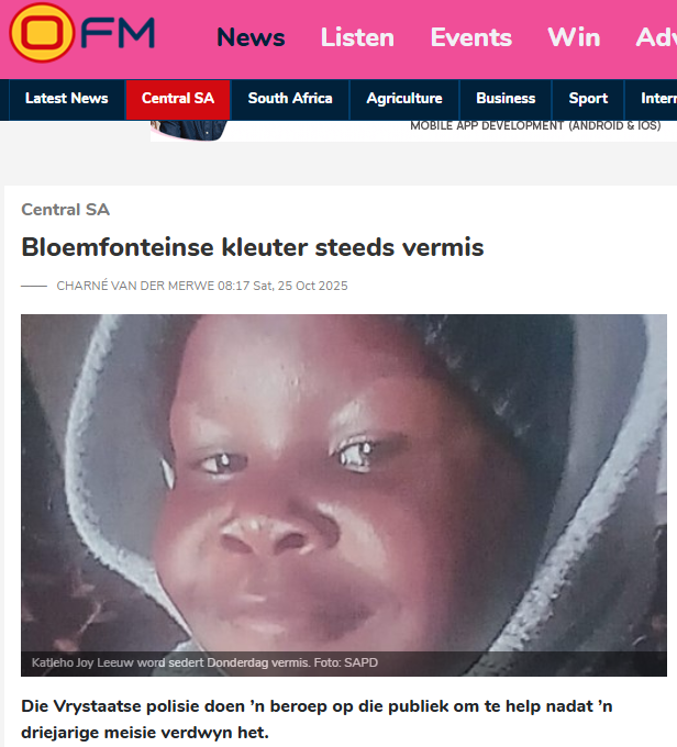 Vrystaatse LUR doen beroep op kalmte ná kleuter se dood in Glen─── ZENANDE MPAME 16:12 Tue, 28 Oct 2025
