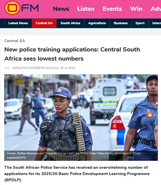 While national interest in the recruitment drive has been strong, regional disparities have emerged. The Free State (which houses less than 5% of SA’s population) received 73,214 applications (7% of the total). North West (6.1% of SA’s population) recorded 66,167 (6.3% of the total), and the Northern Cape (2.2% of SA’s population) had 26,186 applicants (2.5%).
