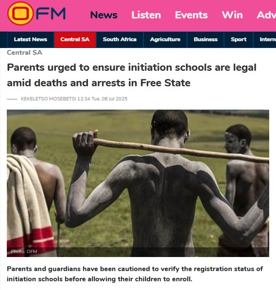 Calls for crackdown on rogue initiation schools in Mangaung─── KEKELETSO MOSEBETSI 14:14 Thu, 30 Oct 2025