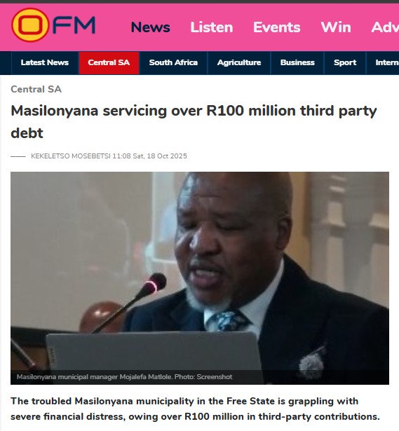 MPs have described Masilonyana as being “run into the ground” by officials “skilled to loot”, echoing long-standing public frustration. Matlole recently acknowledged the municipality’s dire financial state, confirming its massive third-party debt and inability to meet several financial obligations.